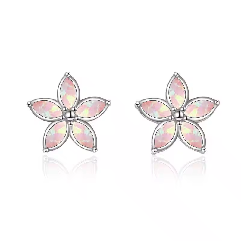 Cercei Hipoalergenici din Argint 925 Placat cu Rodiu- Design Floral