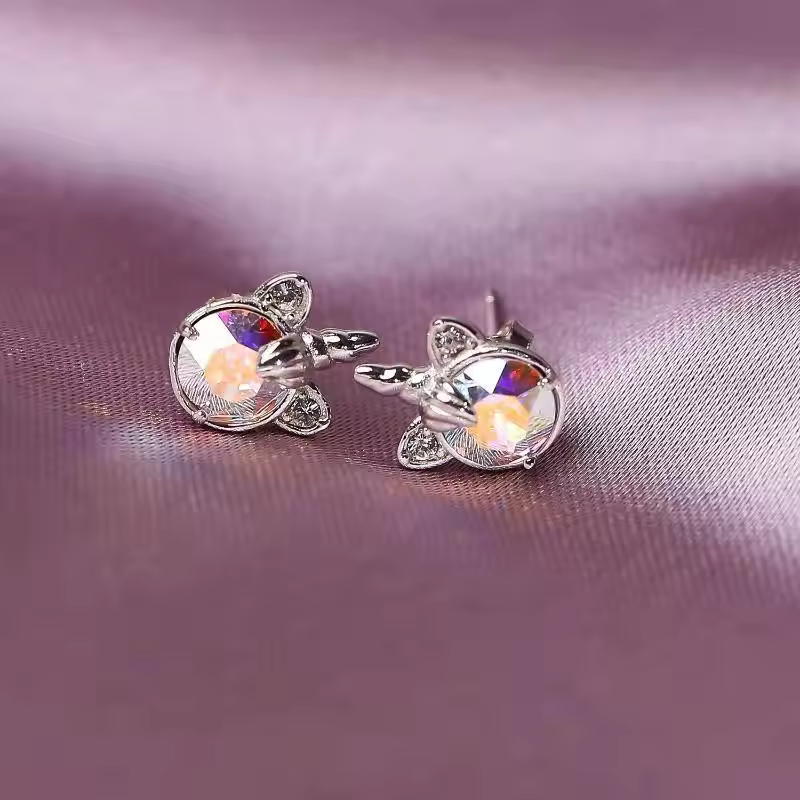 Cerceii Unicorn din argint 925 placat cu rodiu sunt bijuterii delicate și magice, special create pentru fetițele care visează la o lume de basm. Designul unic al unicornului, decorat cu cristale austriece strălucitoare, adaugă o notă de poveste și veselie fiecărei ținute. Cerceii sunt ideali pentru a fi purtați la școală, evenimentele speciale sau în timpul joacei, fiind confortabili și siguri pentru pielea sensibilă a copiilor.