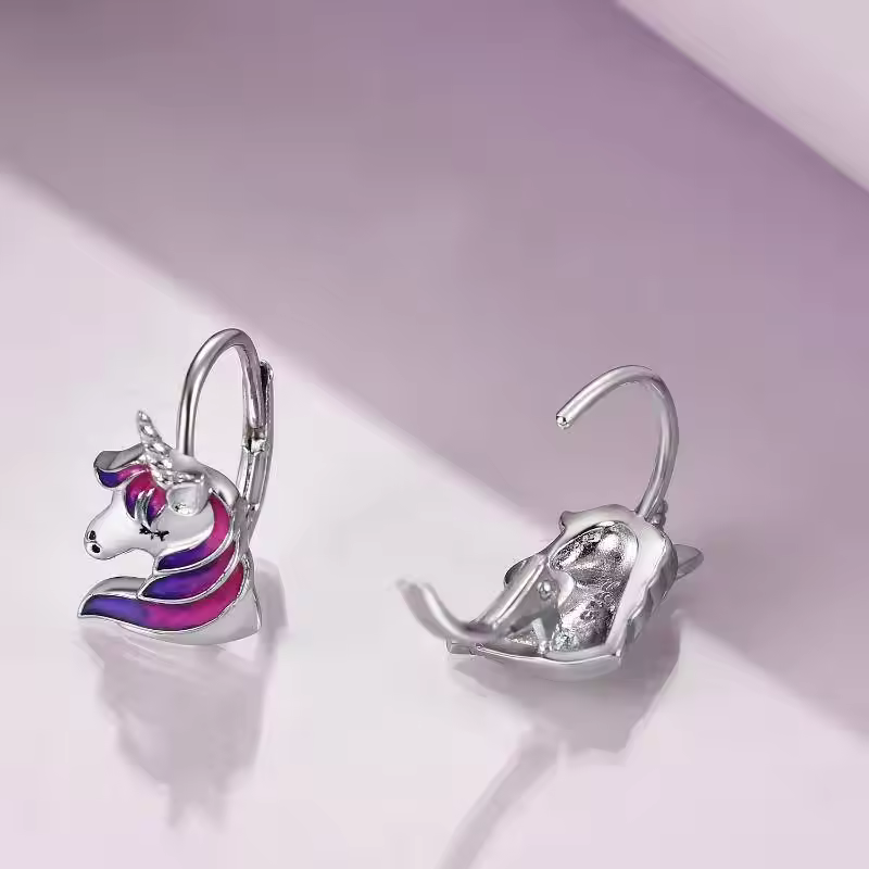 Cerceii veriga Unicorn din argint 925 sunt bijuterie perfectă pentru fetițele care iubesc accesorii drăguțe și vesele. Decorat cu detalii colorate din email, designul unicornului aduce un strop de magie și bucurie, fiind potrivite pentru ținutele de zi cu zi, cât și pentru ocazii speciale. Fiecare unicorn are un aspect fermecător și detalii adorabile, inspirând imaginația copilului tău la fiecare purtare.construiți cu un sistem de prindere tip leverback, acești cercei sunt siguri, confortabili și ușor de pus și scos, adaptându-se perfect la nevoile copiilor activi. Datorită materialului hipoalergenici , cerceii ideali pentru pielea sensibilă, oferind confort și siguranță sunt chiar și pentru urechile delicate ale fetițelor.