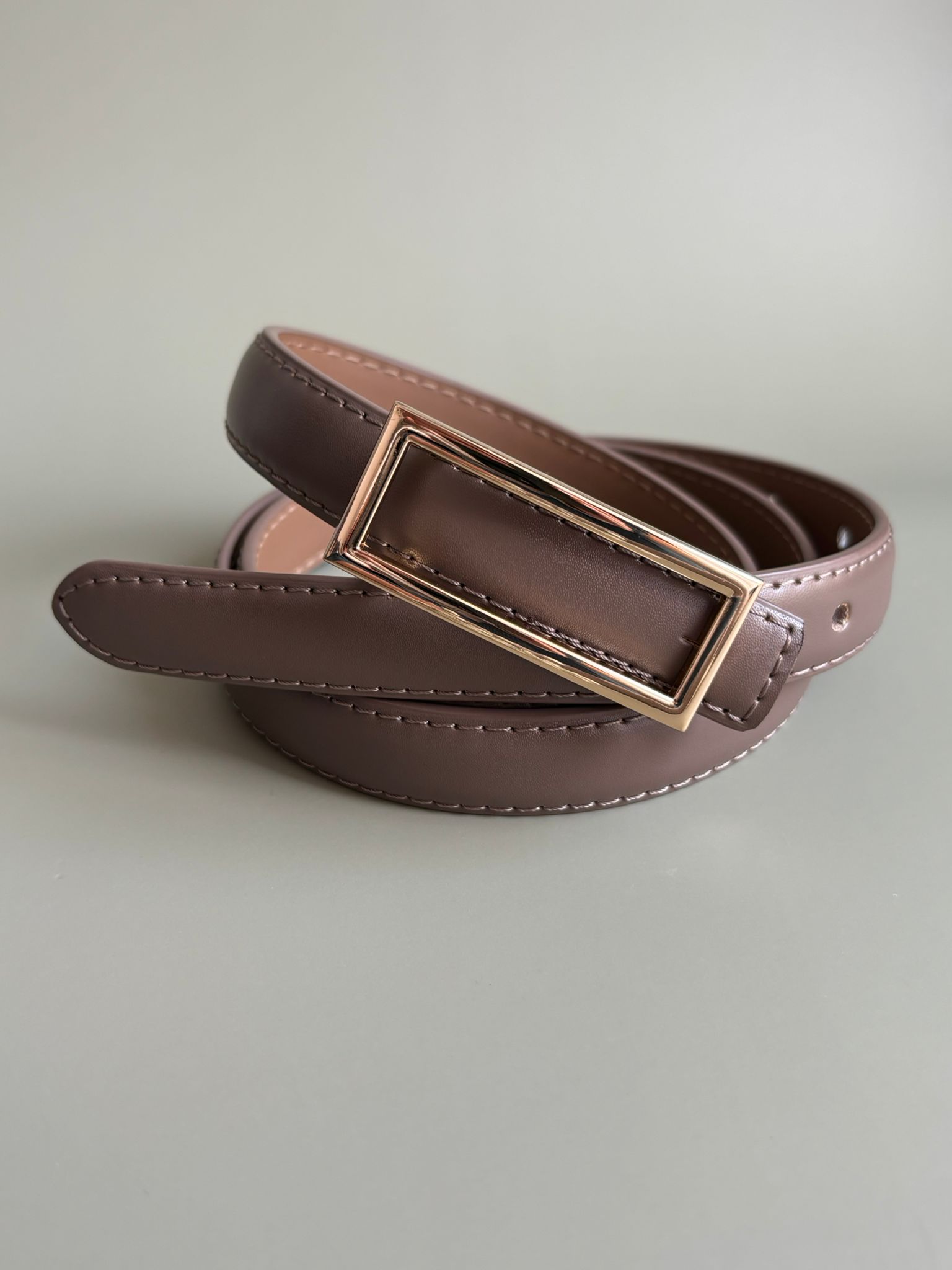 Curea Bej Închis cu Cataramă Metalică